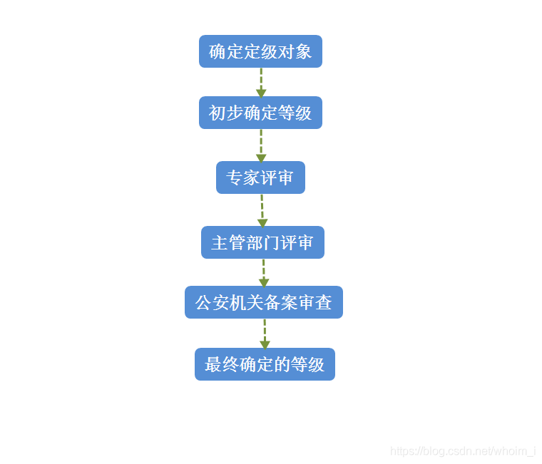 定級工作的主要內容包括:確定定級對象、初步確定等級、組織專家評審、主管部門審核、公安機關備案審查、最終確定等級。其流程圖如下: